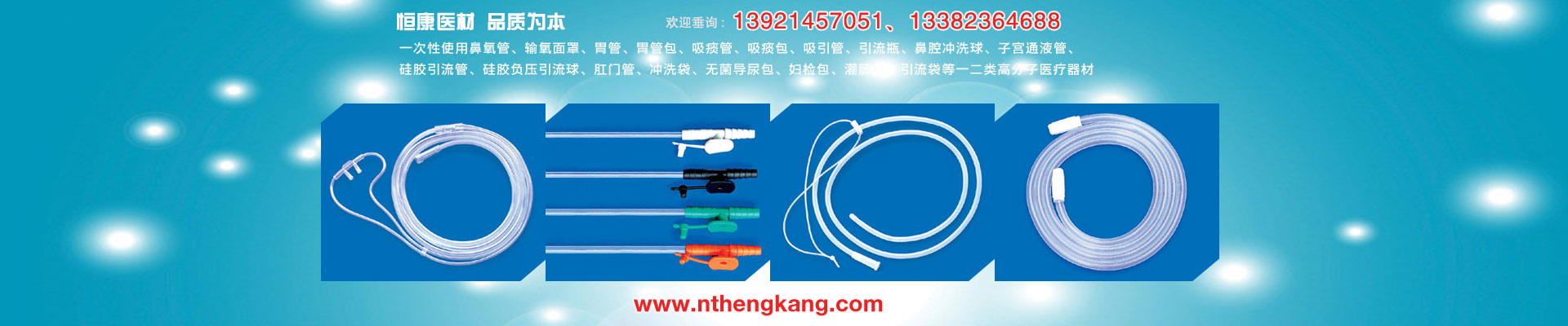 “品質求優、服務滿意、有效保持、持續發展”是恒康的質量方針,本公司在有關專家的支持下,借鑒國內同類產品的優點,開發了硅膠胃管、鼻氧管、子宮通液管、吸痰管、負壓球、引流袋、連接管等一二類高分子醫療器材近20個產品,100多個規格型號,產品遍步全國20多個省市和自治區,部分產品出口東南亞、西歐等地區,深得用戶的信賴和好評。